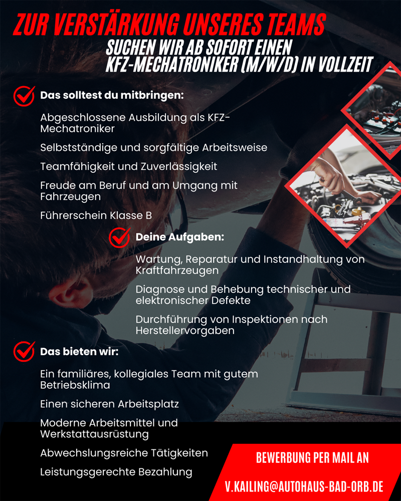 Wir suchen ab sofort eine/n Mechatroniker/in